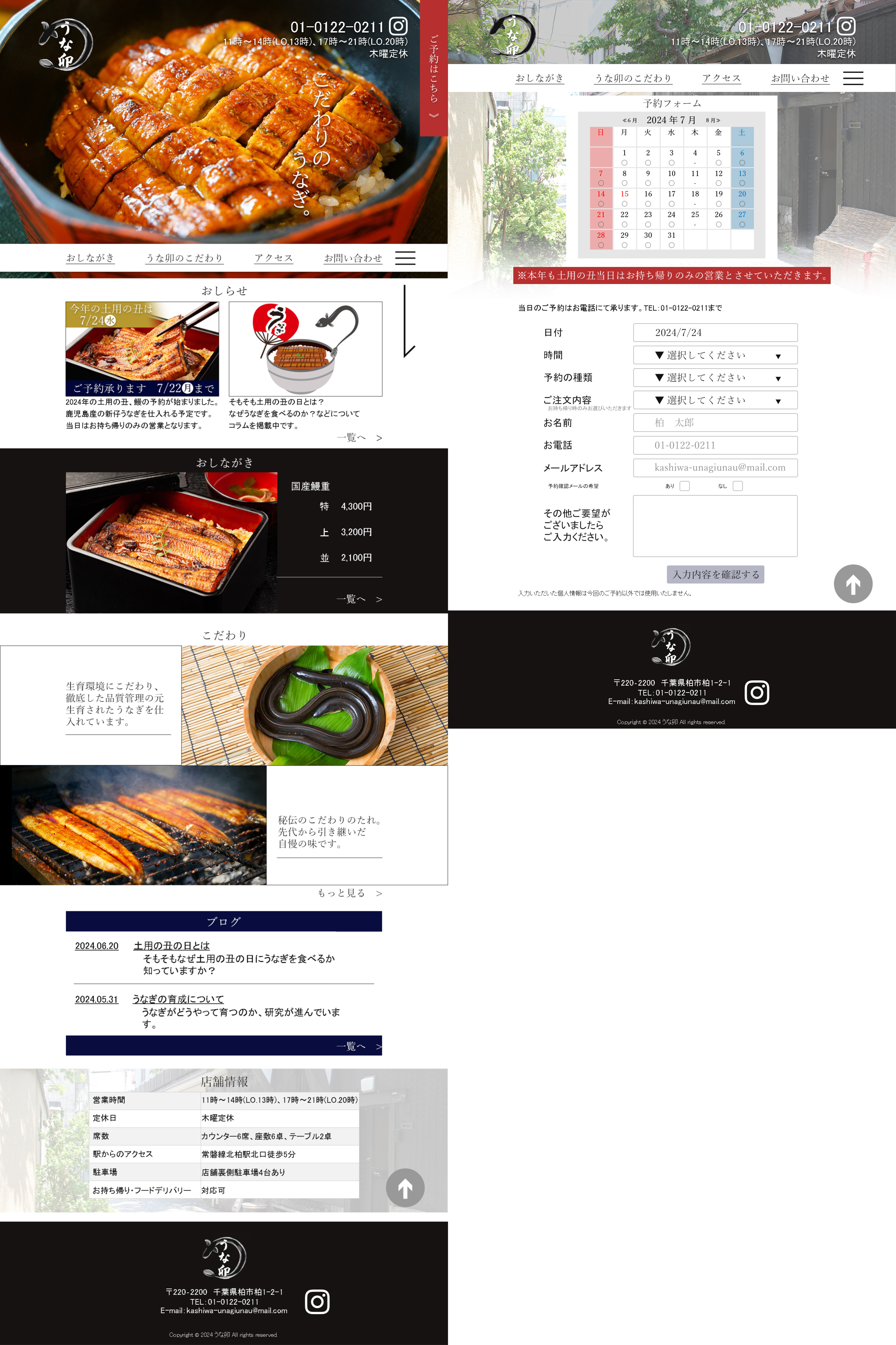 【デザインの意図】外部サイトなどを見てWEBサイトにアクセスした若い世代になじみやすいデザインを意識しつつも、比較的単価の高い飲食店のため、黒を使用し高級感を失わないようにしました。